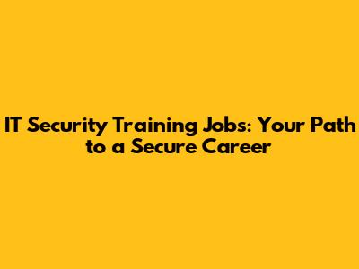IT Security Training Jobs: Your Path To A Secure Career