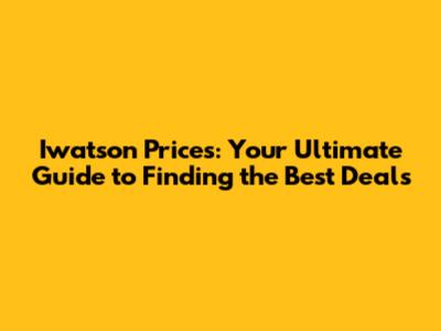 Iwatson Prices: Your Ultimate Guide To Finding The Best Deals