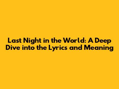 Hey music lovers! Ever gotten a song stuck in your head and just needed to know what it's all about? Well, if you're vibing with "Last Night in the World," you're in the right place! We're gonna dive deep into the lyrics, meaning, and all the juicy details of this awesome track. So, grab your headphones, get comfy, and let's explore this musical gem together. This article aims to break down the song “Last Night in the World”, providing an in-depth analysis of the lyrics, exploring their meaning, and offering a broader understanding of the song's impact and appeal. The goal is to provide a comprehensive guide that caters to both casual listeners and dedicated fans, enriching their experience and appreciation of the music. Understanding the emotional landscape of the song and what it tries to convey is very important. This helps in forming a deeper connection with the music and its message. We'll also be touching upon the context of the song's creation and its reception, to give you a complete picture.