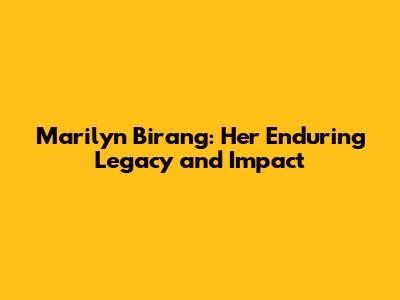 Marilyn Birang: Her Enduring Legacy And Impact