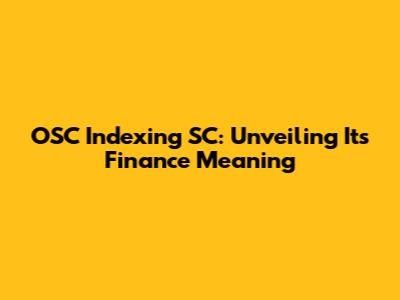 OSC Indexing SC: Demystifying Its Finance Meaning