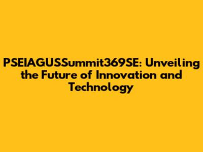 PSEIAGUSSummit369SE: A Deep Dive Into Tech And Innovation