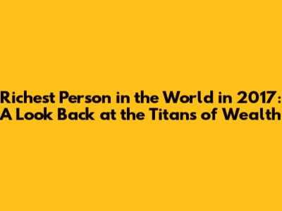 Richest Person In The World In 2017: A Look Back