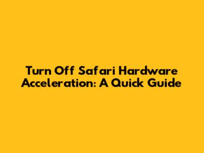 Hey everyone! So, you're probably here because you're dealing with some wonky visual issues in Safari, maybe stuttering videos, weird graphical glitches, or just a generally sluggish browsing experience. Often, the culprit behind these annoyances is something called hardware acceleration. In this guide, we're going to dive deep into what hardware acceleration is, why you might want to turn it off in Safari, and most importantly, how to do it. We'll make this super easy to follow, guys, so even if you're not a tech wizard, you'll be able to get this sorted out in no time. Stick around, because optimizing your browser can seriously make a difference in your daily online life!